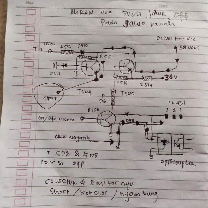 jadi ketika tv stby vcc 5 v jalurnya adalah D504. R514 T 506 dan T 505
